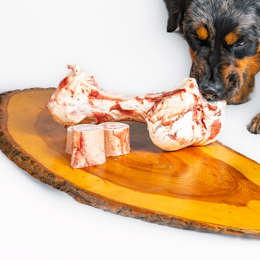 Unser Rinder-Oberschenkelknochen ist ein kräftiger, naturbelassener Knochen vom Rind, der sich hervorragend als natürlicher Kausnack und Beschäftigungsmöglichkeit für mittelgroße bis große Hunde eignet.